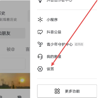 2、之后右侧展开功能栏,滑动到最底部点击【设置】功能;