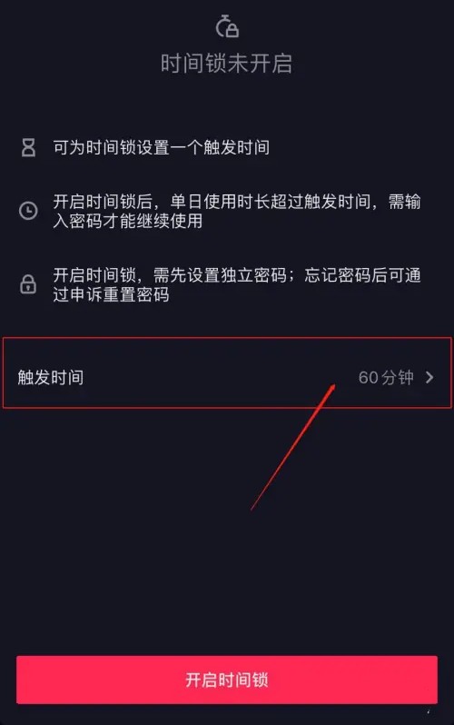 5、最后开启时间锁,设置观看视频的限制时长也就是时间锁触发时长。