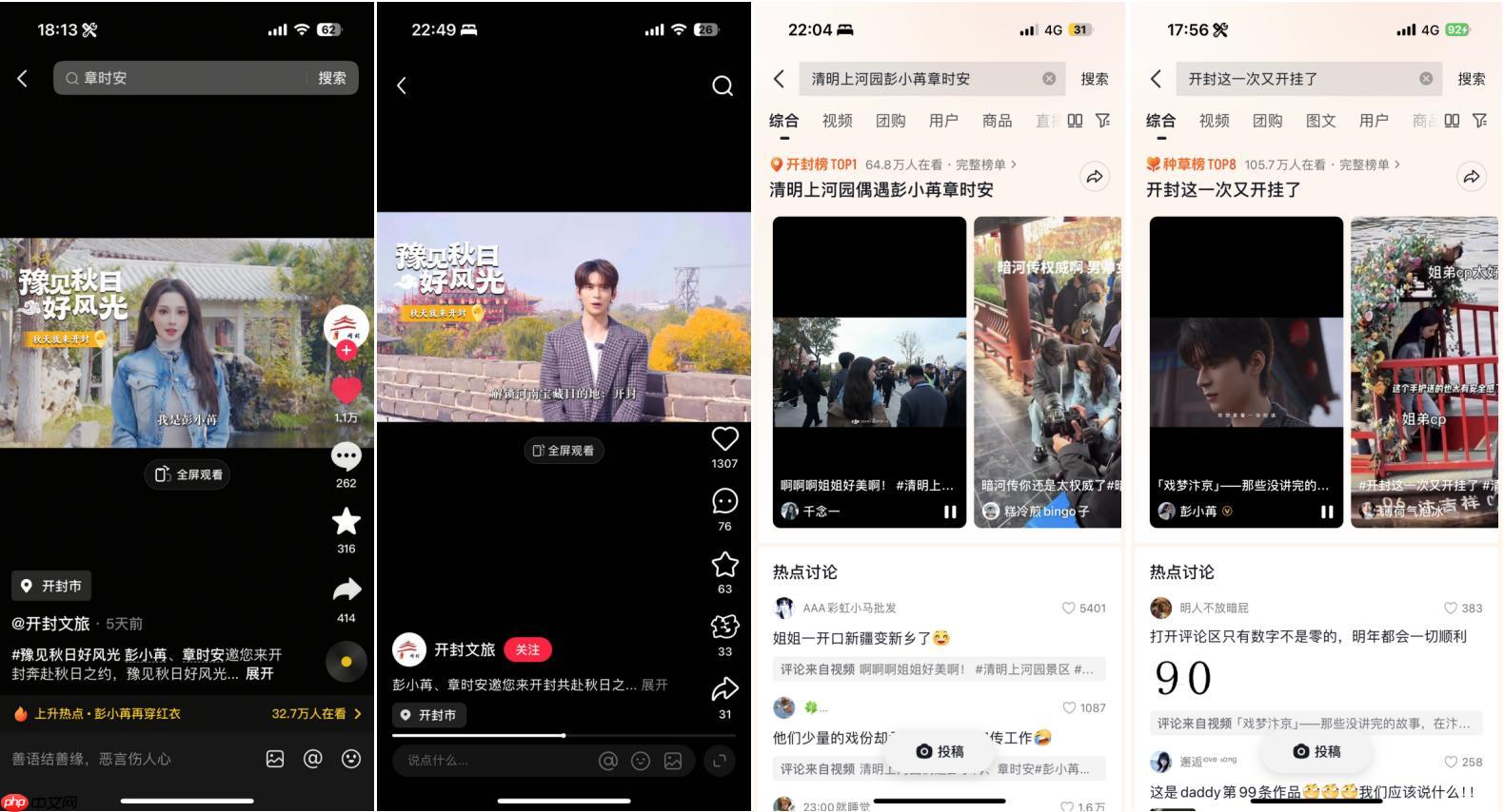 明星CP彭小苒与章时安的加入,为开封增添了浓厚的情感色彩。项目巧妙结合热播剧《暗河传》的人气组合,将剧中情感延伸至现实场景。拍摄当日,策划路透视频并获开封文旅官方助力,迅速引爆全网关注,相关内容总曝光近2亿,单条视频最高点赞突破55万。活动当天,#清明上河园偶遇彭小冉章时安 登上全国热点榜TOP27、全国娱乐榜TOP5、开封同城榜第1位;#彭小苒章时安清明上河园、#开封版泰坦尼克 等话题也登陆小红书、微博等多个平台热搜,形成跨平台传播热潮,进一步拉升目的地热度。