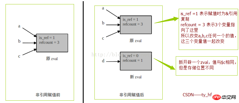 改变指的是,有&引用赋值时,要把新开辟的zval 的 is_ref 赋值为1