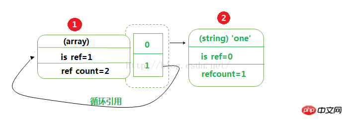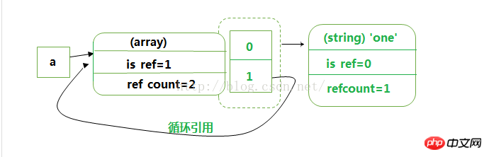 Unset之后,虽然没有变量指向该zval,但是该zval却不能被GC(指PHP5.3之前的单纯引用计数机制的GC)清理掉,$a 被释放,但是$a里的$a[1]也指向了该zval,它没有被释放,导致zval的refcount均大于0。这样,这些zval实际上会一直存在内存中,直到请求结束(参考SAPI的生命周期)。在此之前,这些zval占据的内存不能被使用,便白白浪费了,换句话说,无法释放的内存导致了内存泄露。
