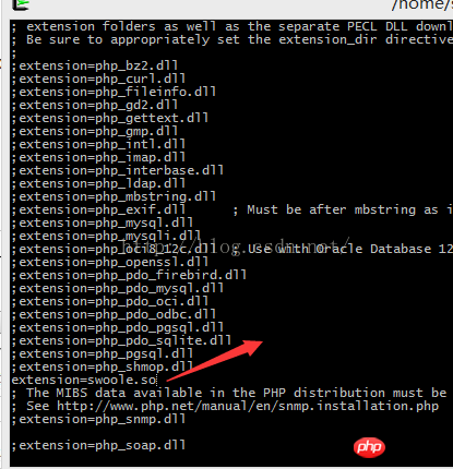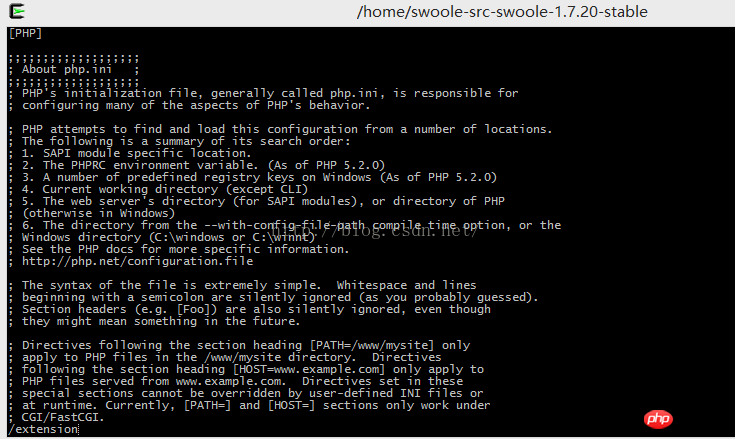 5使用命令: php -i | grep php.ini,找到php cli使用的配置文件php.ini的路径,修改php.ini文件,在文件中添加一行:extension=swoole.so,然后关闭退出