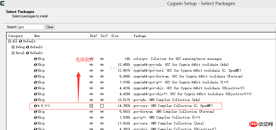 选择安装的软件包,这里需要安装gcc、PHP、php开发工具、autoconf、pcre-devel,其它默认,这里注意的是,在上方的搜索栏搜索后,在下边找到对应的软件包选中,点击下一步按钮开始安装。(注意:下方的截图是我安装后界面,点击的位置一样,后边的图标可能不一样哦)
