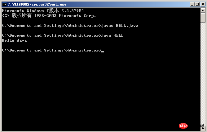 用命令行编译程序(我将该源程序文件放在管理员的目录下,如若不是在这,要输入cd 到其它位置,如:cd D:HELL.java)