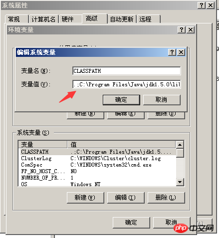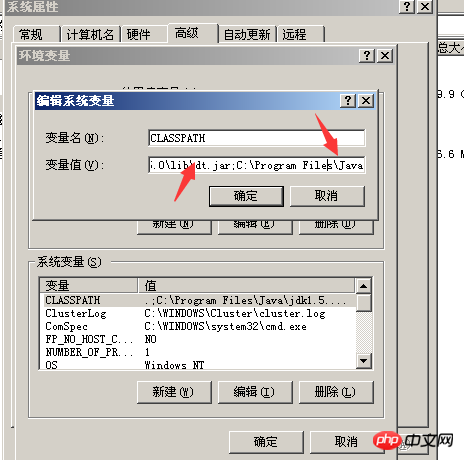 切记前面的“.;”一定要写上,然后写下jdk安装目录下lib目录里面的dt.jar和tools.jar路径,分开写如: