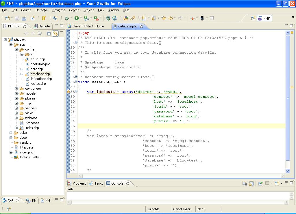 修改工程app/config/目录下database.php.default文件名为database.php,并修改其配置。