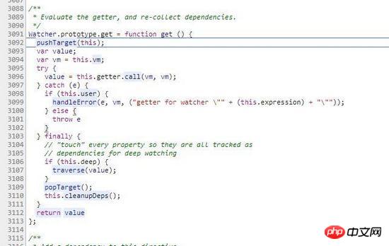 }也就是说如果当前有 Dep.target 的话,就把target放到 targetStack 里面,如果没有的话,就设为当前的target,也就是这个watcher。 接着,就是执行了它的 getter 属性,也就是刚刚传入 updateComponent 函数。而 updateComponent 就是我们开篇提到第三步了。