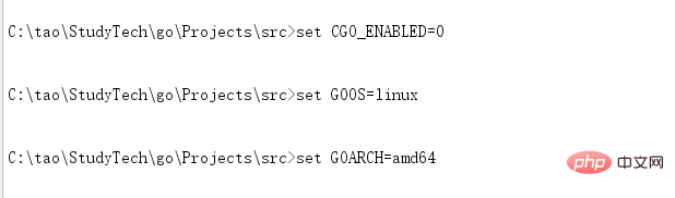 1、在src目录下依次执行set CGO_ENABLED=0、set GOOS=linux、set GOARCH=amd64命令