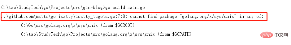 2、进入主项目目录,执行go build 程序入口文件。我这里是main.go