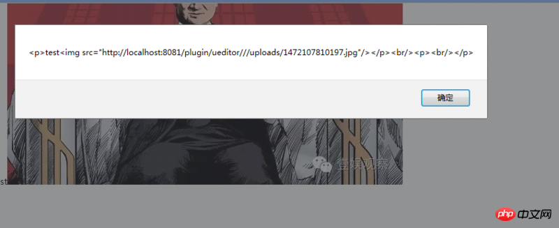 用的是ueditor自带的图片上传功能,上传完成后前台能得到完整的img标签,于是通过ue.getContent();得到编辑器的html内容.