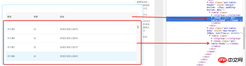 可以试试将表格头部和和body分开写哦,不要写在一个table里面,看了下ant design 就是这么做的