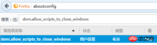 这是火狐浏览器自身做的限制,所以只能由用户解除这个才行:打开火狐浏览器,地址栏输入about:config,找到dom.allow_scripts_to_close_windows这项(支持Ctrl+F搜索),默认值为false,双击修改成true,就可以使用脚本关闭窗口了。实测 Firefox 47.0.1可用。